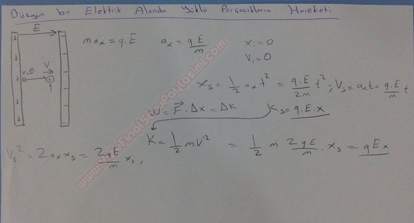 Düzgün Elektrik Alan Yüklü Parçacık Hareket Ders Notu Fizik-2
