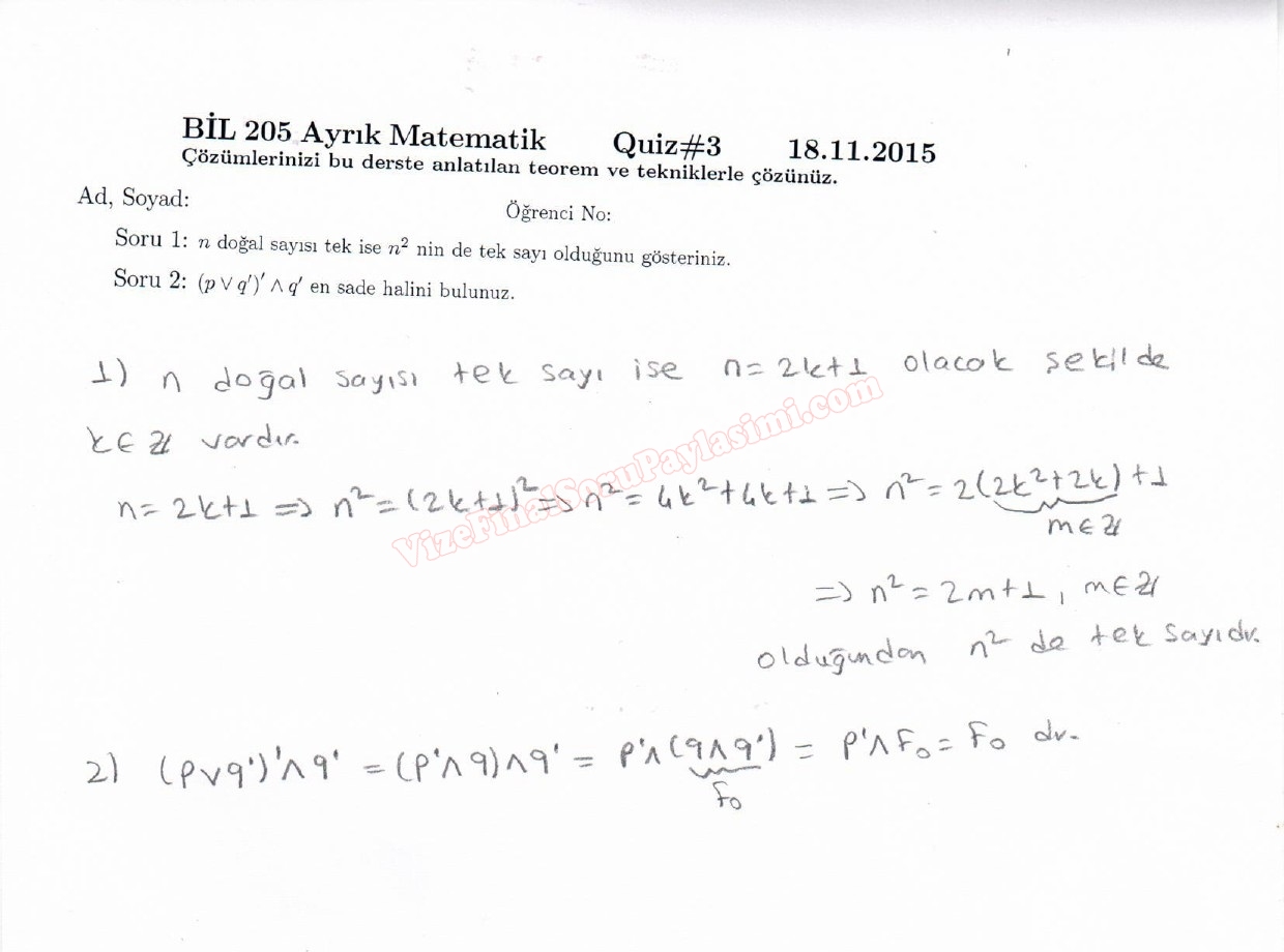 Ayrık Matematik Dersi Vize Soruları ve Çözümleri 15-12-2015, 21:00