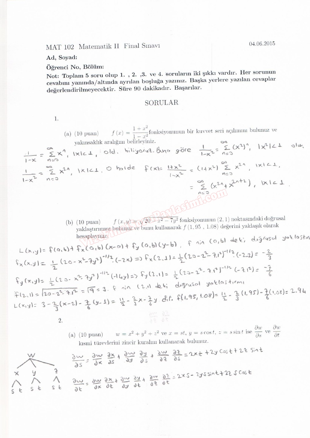 Matematik -2 Mazeret Soruları ve Çözümleri 17-12-2015, 20:13