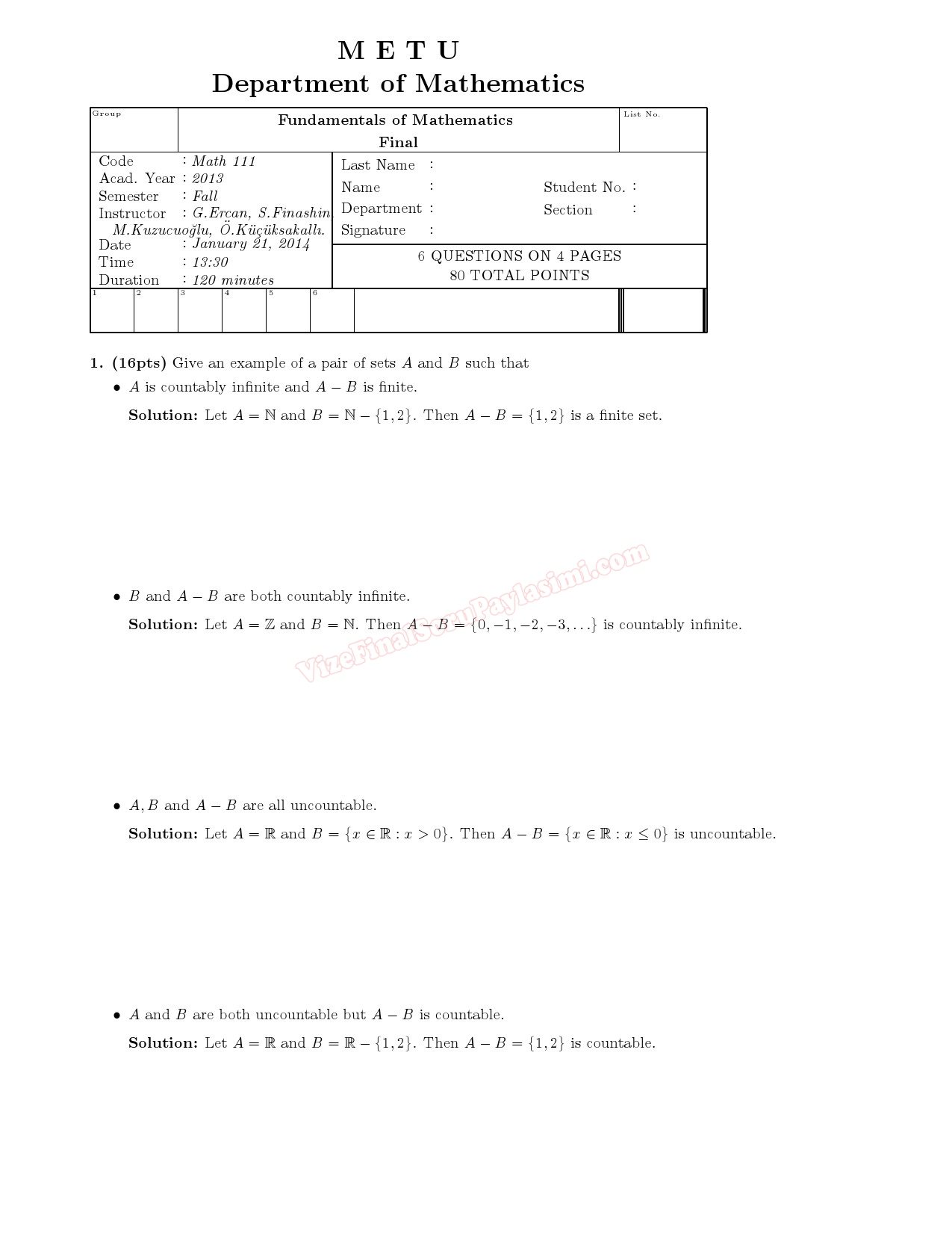Vize ve Final Soruları / ODTÜ / Fundamentals of Mathematics Lesson