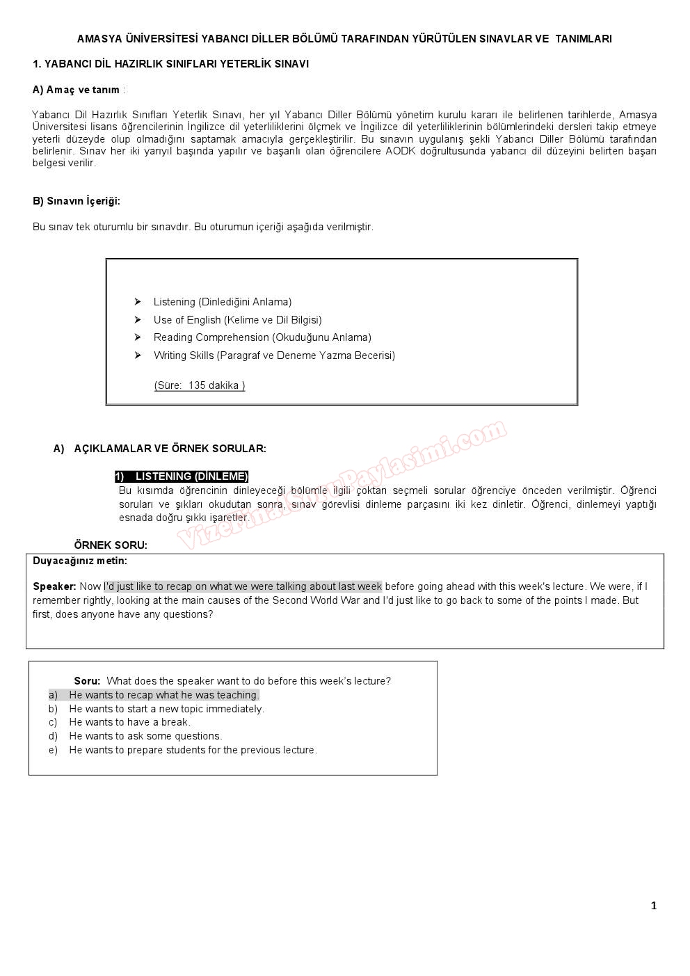 Amasya Üniversitesi İngilizce Hazırlık Muafiyet Soruları