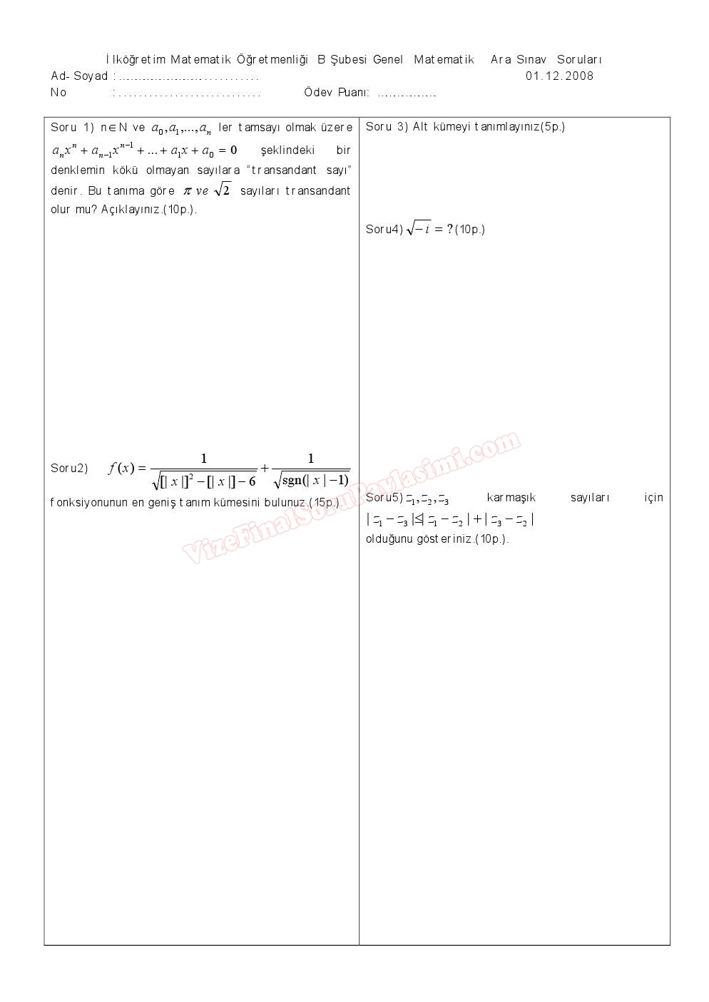 Genel Matematik Dersi Vize Soruları 16-11-2015, 01:53
