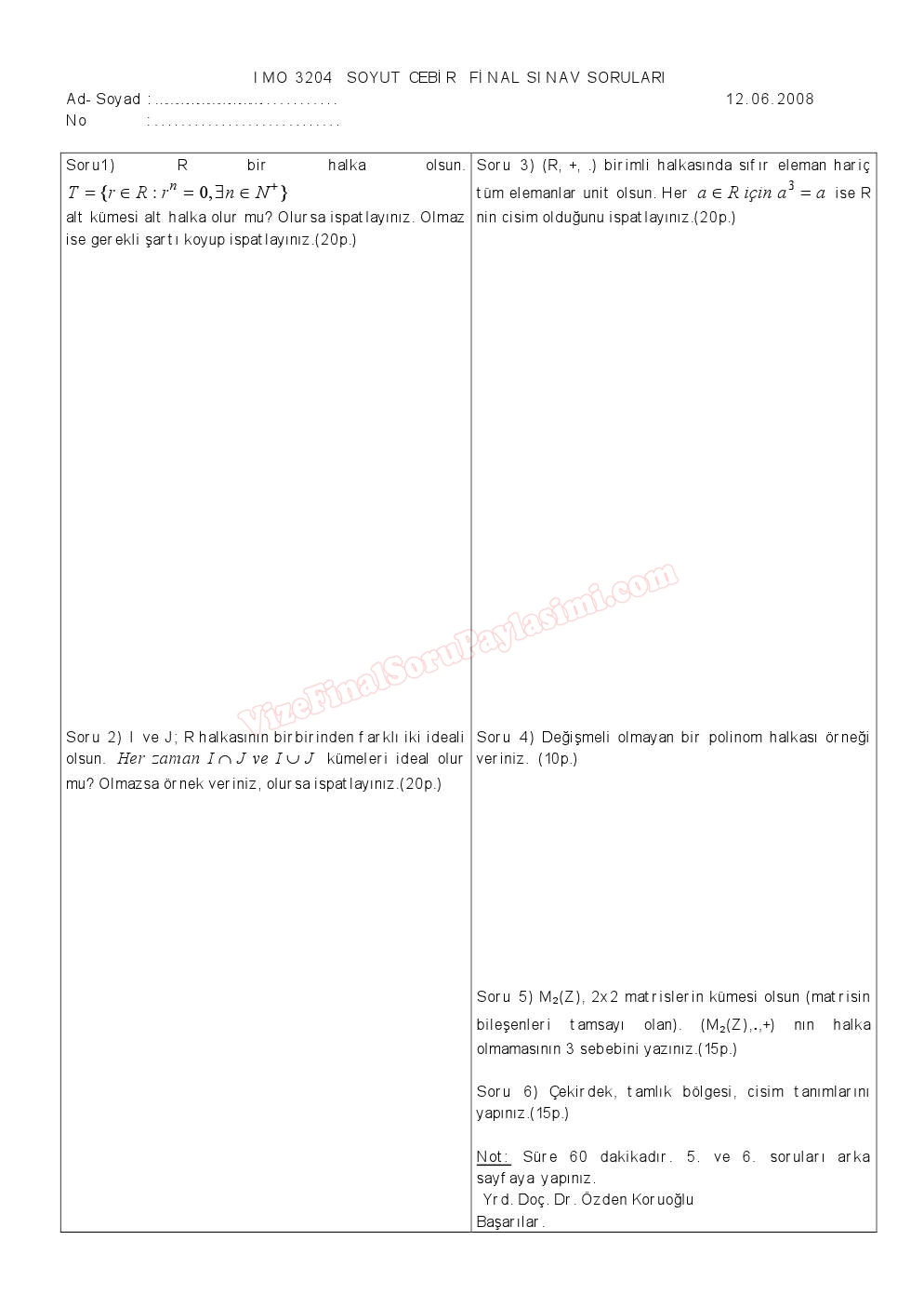 Soyut Cebir 2 Final Soruları 20-12-2015, 18:51