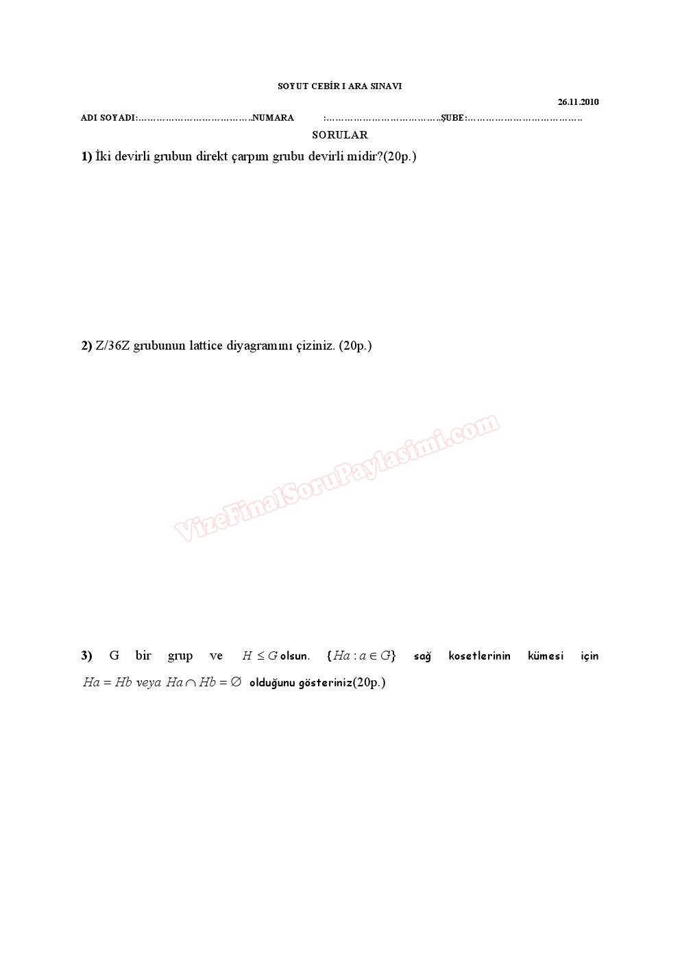 Soyut Cebir 1 Final Soruları 2010