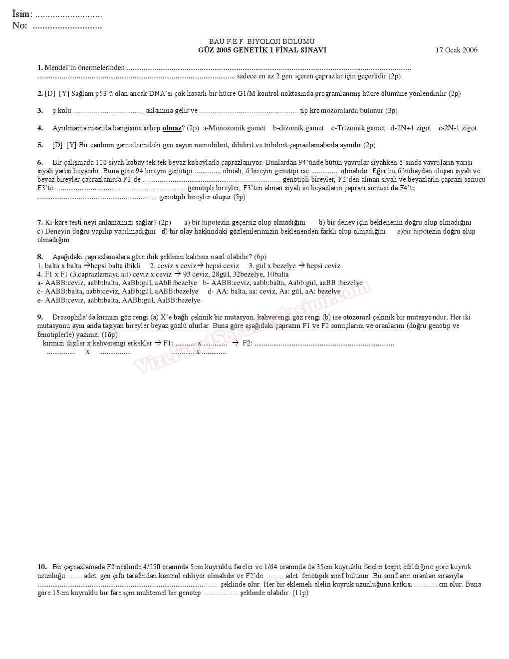 Genetik-1 Vize Soru ve Cevapları 2005 25-12-2015, 13:06
