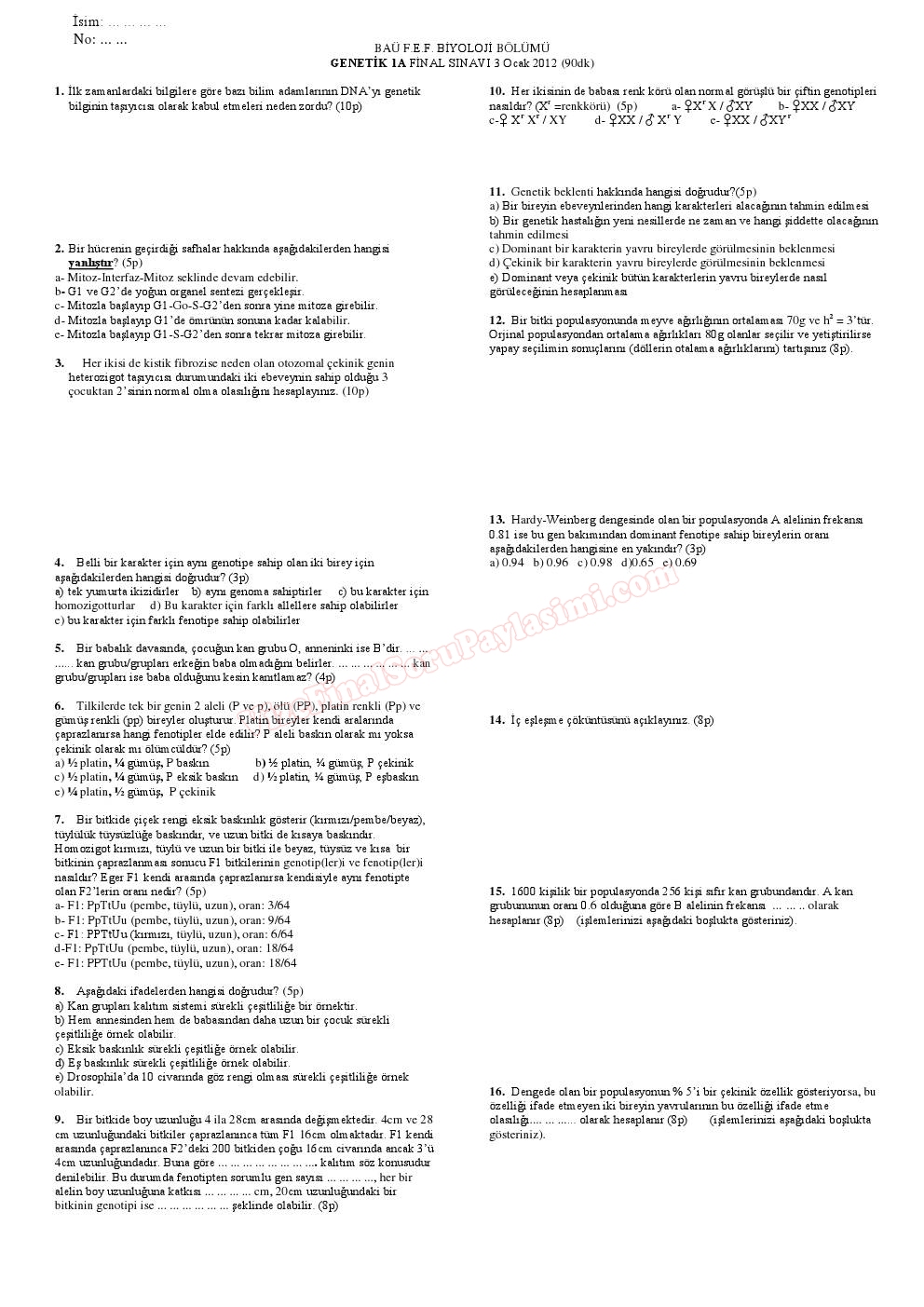 Genetik Dersi Final Soruları 25-10-2015, 00:41