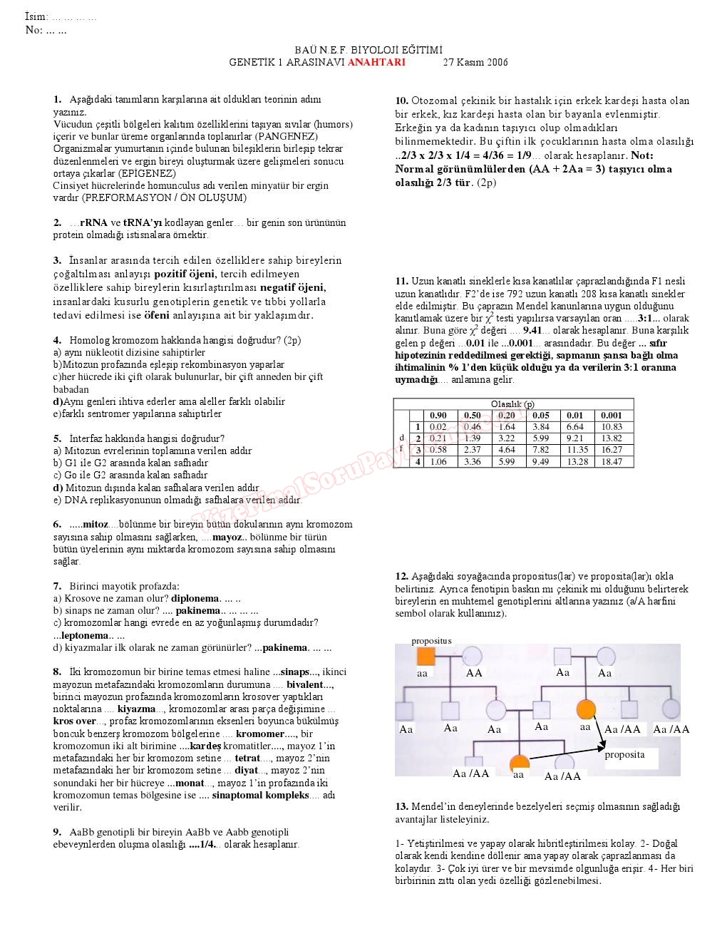 Genetik-1 Vize Soru ve Cevapları 2005 25-12-2015, 13:06