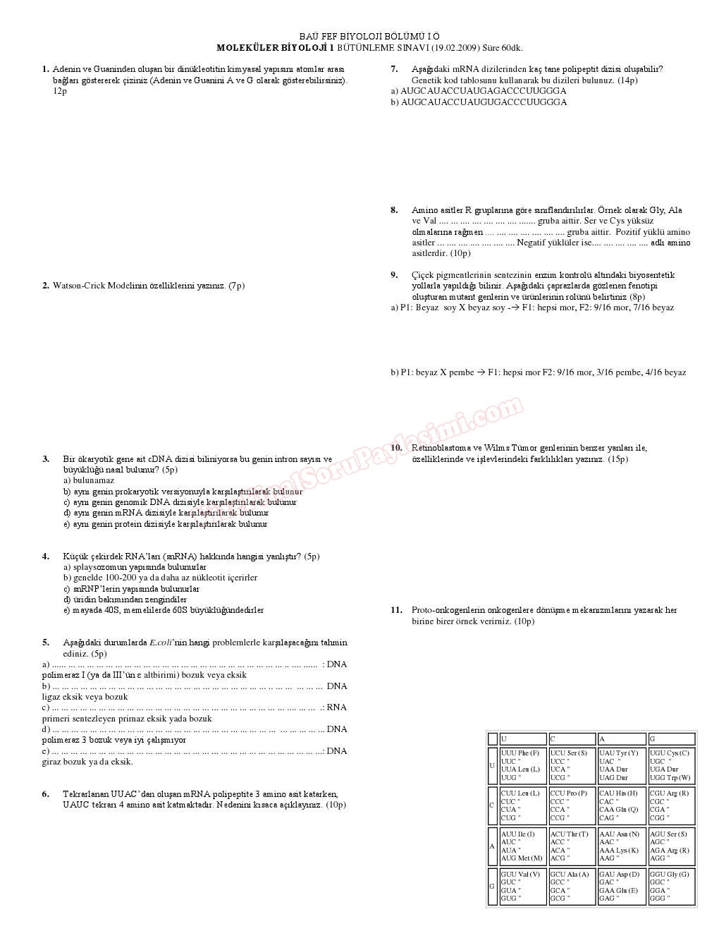 Moleküler Biyoloji-1 Sınav Soruları 27-12-2015, 13:55