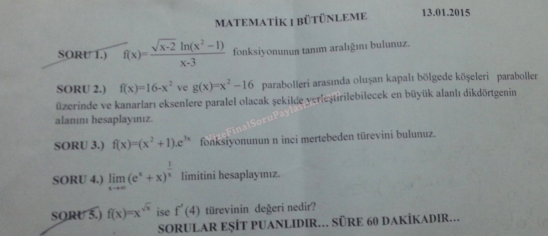 Matematik-1 Bütünleme Soruları ve Cevapları -2015 1-02-2015, 13:31