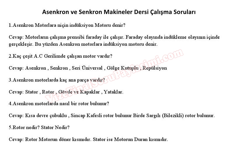 Asenkron ve Senkron Makineler Dersi Çalışma Soruları Cevapları Üniversite Ders Notları