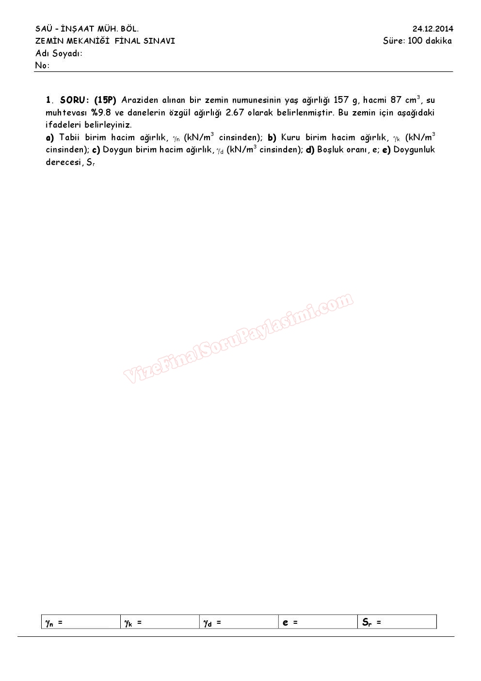 Zemin Mekaniği Final Soruları - 2014 (İnşaat Müh.)
