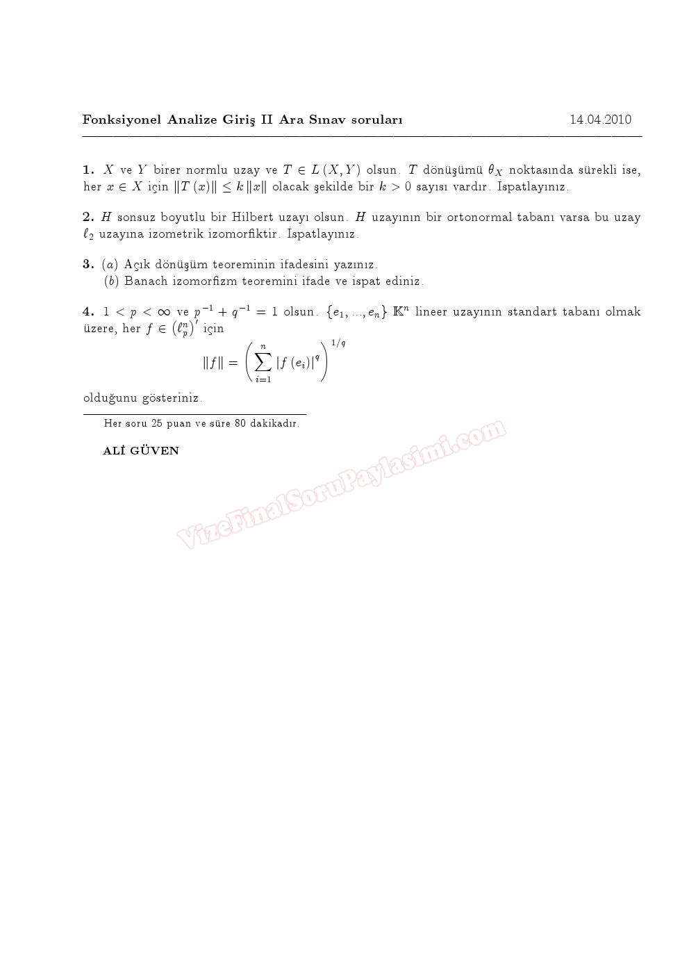 Fonksiyonel Analize Giriş-1 Vize Soruları 2010 12-01-2016, 03:39