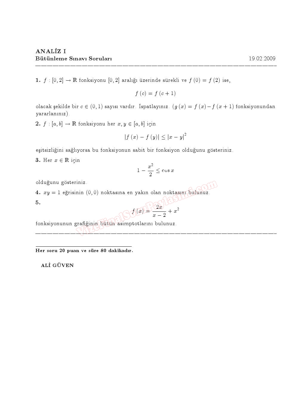 analiz 1 Bütünleme Soruları Pamukkale Üniversitesi