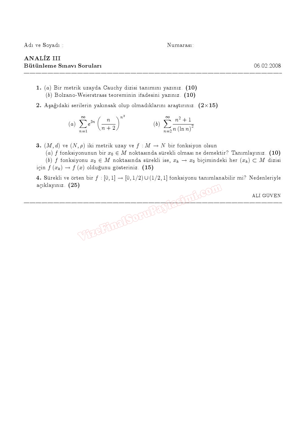 Vize ve Final Soruları / Pamukkale Üniversitesi / Analiz -3 Dersi