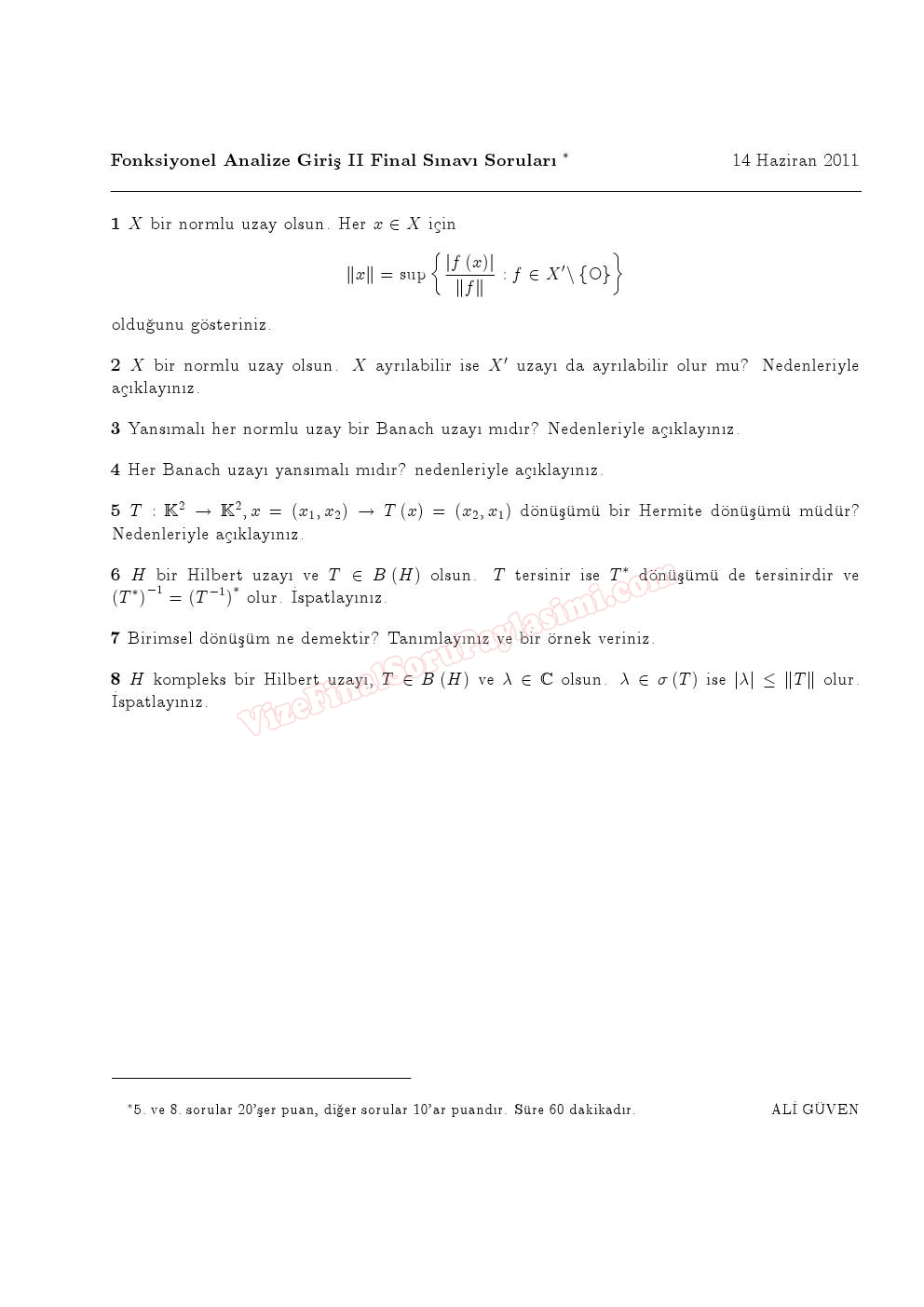 Vize ve Final Soruları / Pamukkale Üniversitesi / Fonksiyonel Analize Giriş -2