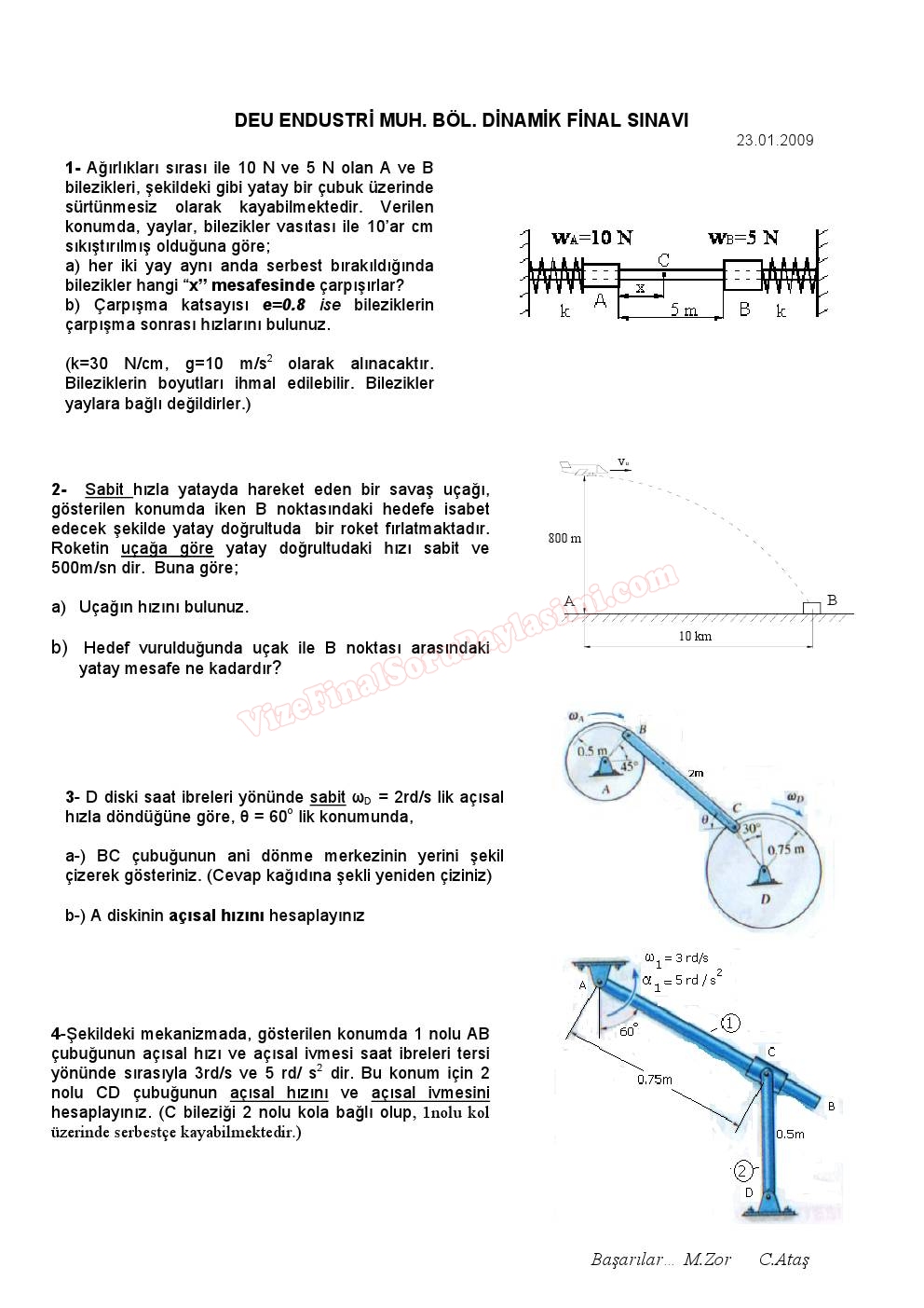 Vize ve Final Soruları / Dokuz Eylül Üniversitesi / Dinamik Dersi