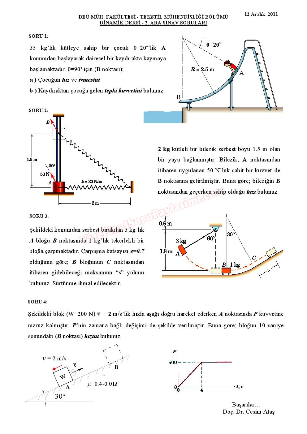 Vize ve Final Soruları / Dokuz Eylül Üniversitesi / Dinamik Dersi