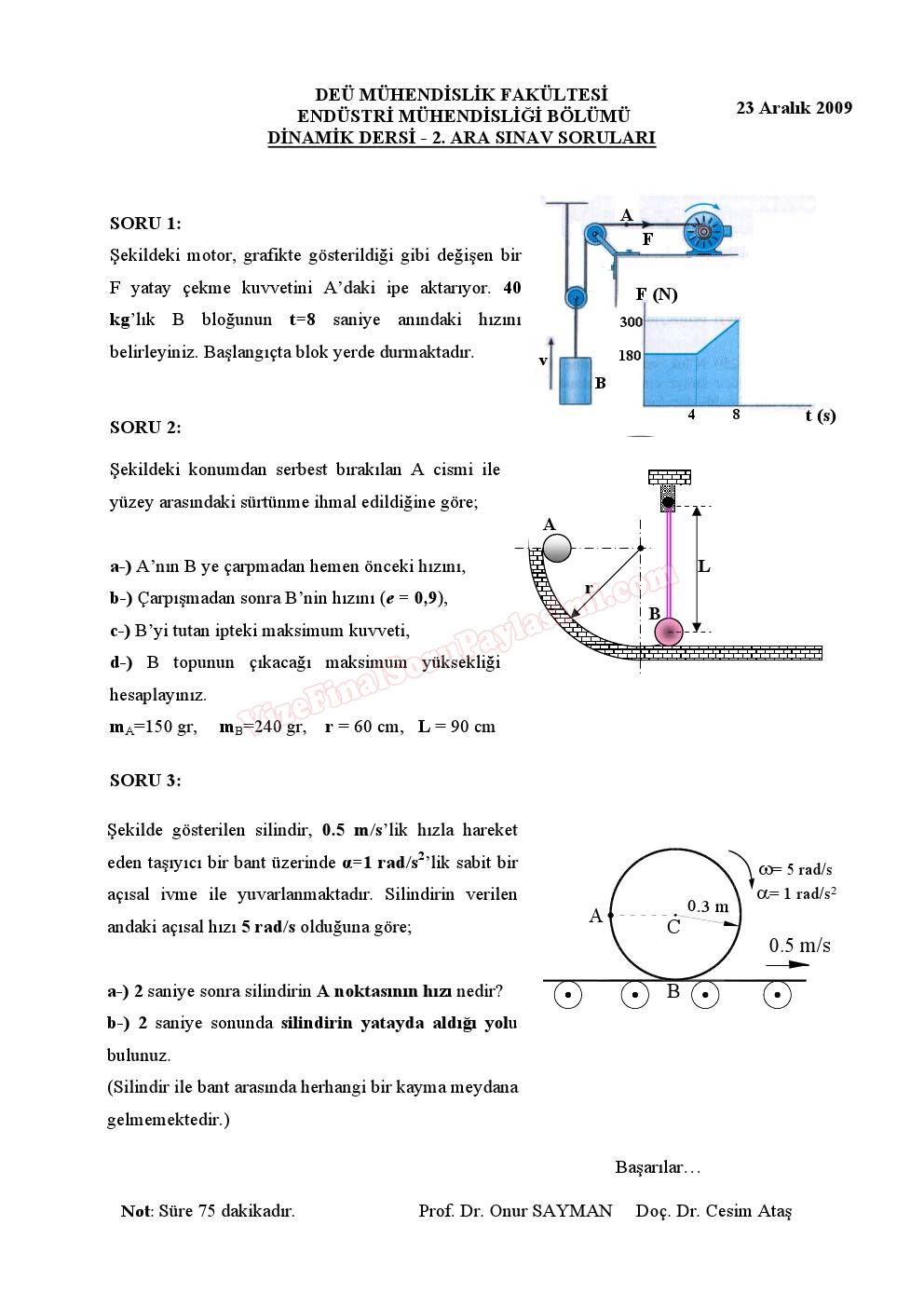 Vize ve Final Soruları / Dokuz Eylül Üniversitesi / Dinamik Dersi