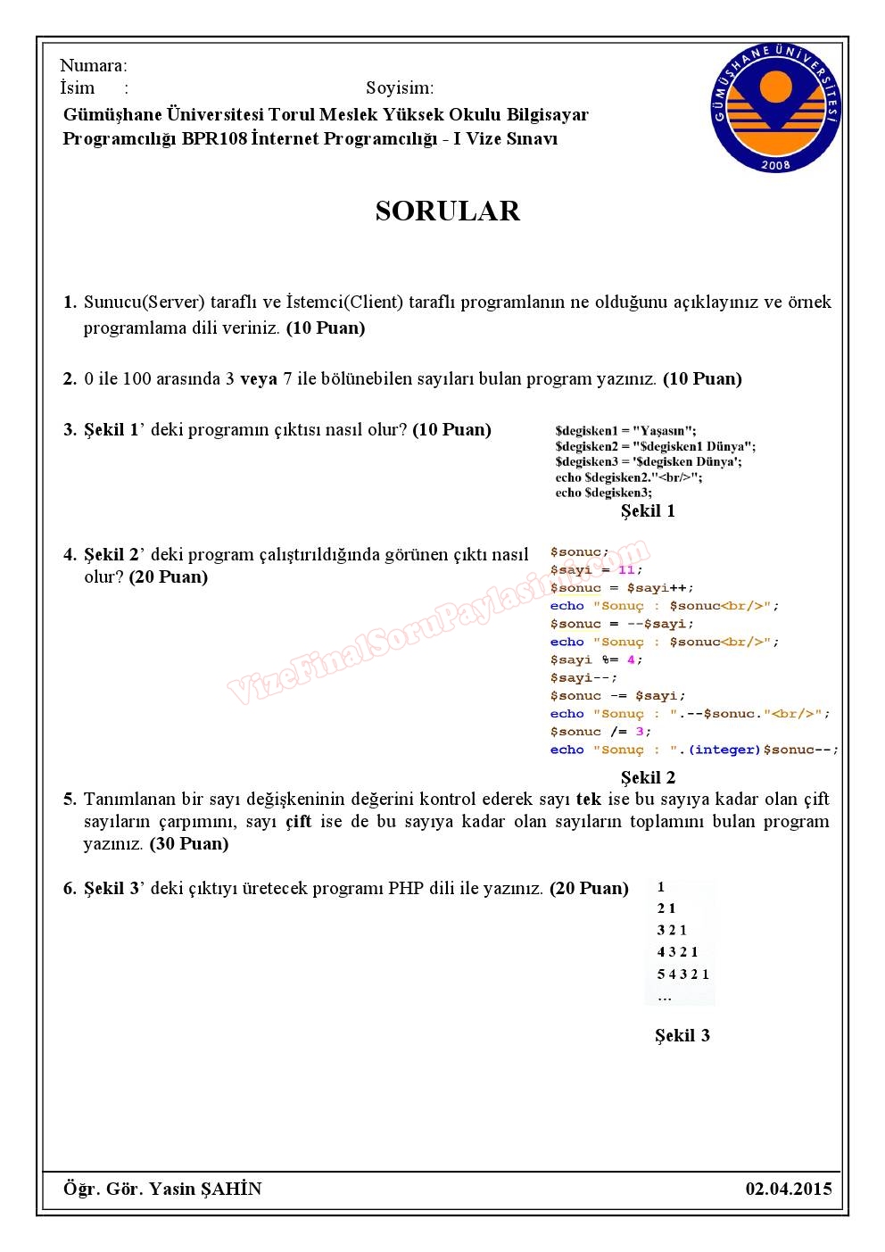 Vize ve Final Soruları / Gümüşhane Üniversitesi / İnternet Programcılığı –1