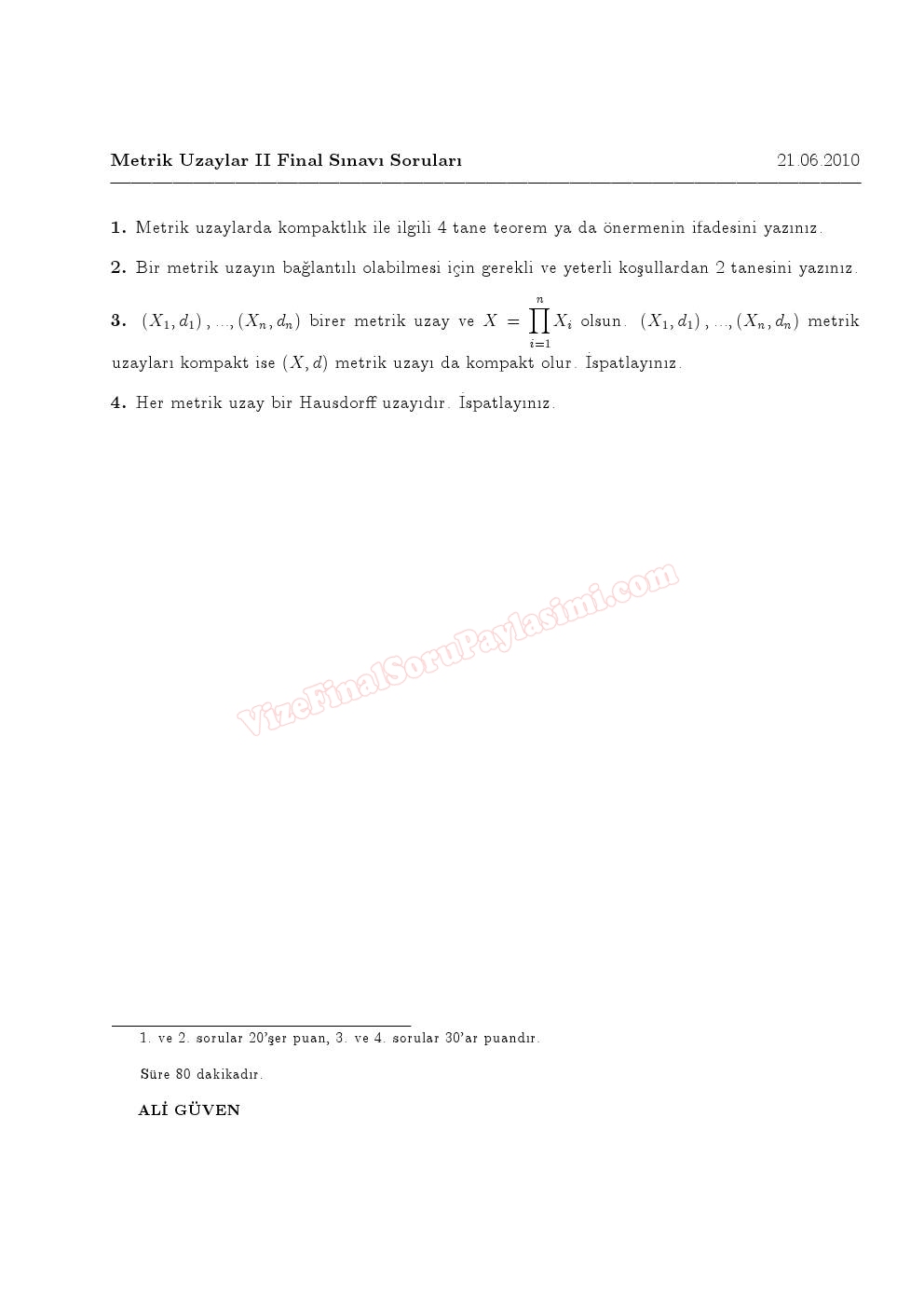 Metrik Uzaylar-1 Final Soruları 2010 17-01-2016, 05:32