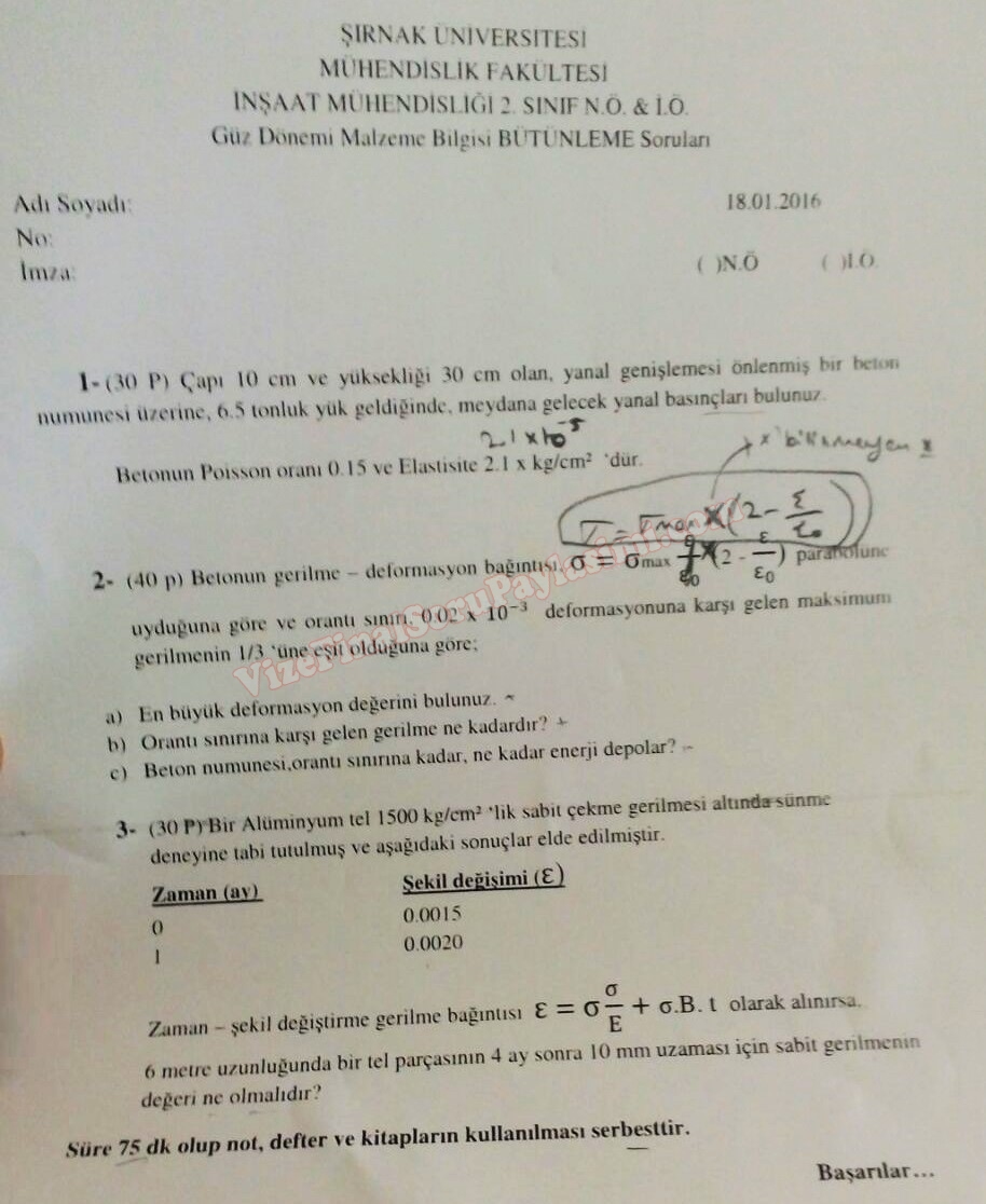 Malzeme Bilgisi Bütünleme Soruları Şırnak Üniversitesi İnşaat Mühendisliği