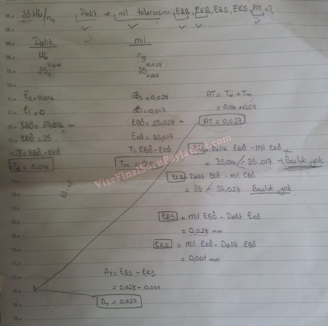 Delik ve Mil Toleransı Soru Çözümü EBB EKB EBS EKS AT Endüstriyel Ölçme Tekniği Dersi