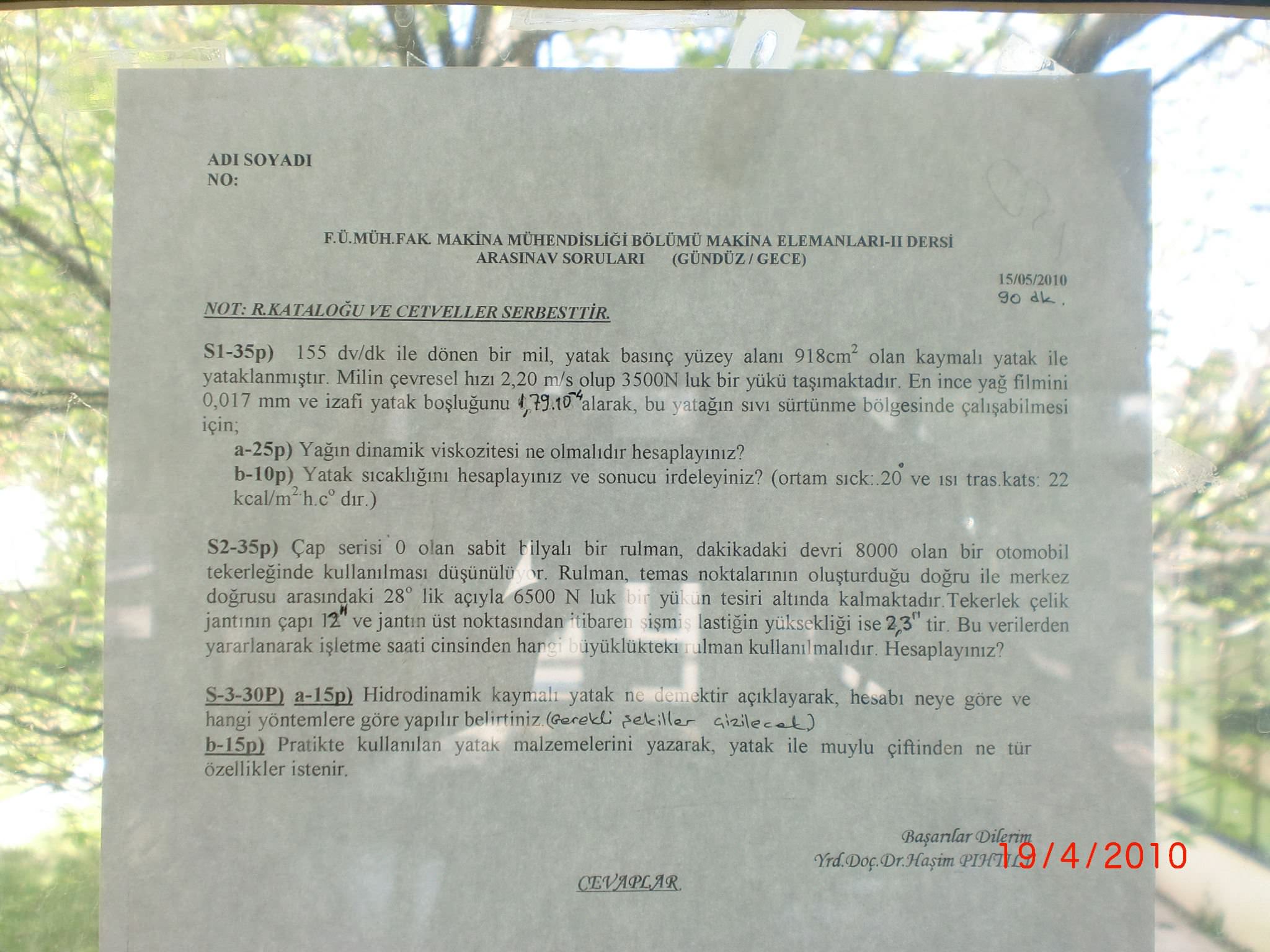 Makine elemenaları makina elemanları vize soruları makina elemanları final soruları
