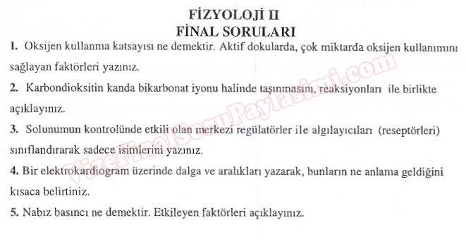 Vize ve Final Soruları / Fırat Üniversitesi / Fizyoloji -2 Dersi