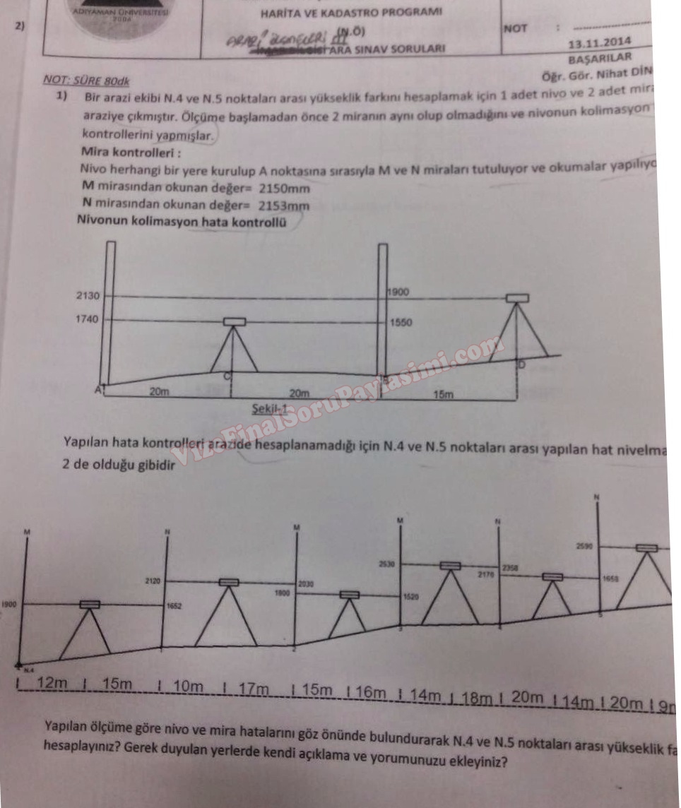 Vize ve Final Soruları / Adıyaman Üniversitesi / Arazi Ölçmeleri -3
