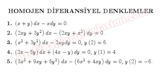 Homojen Diferansiyel Denklemler Çalışma Soruları