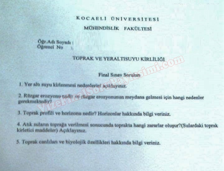 Vize ve Final Soruları / Kocaeli Üniversitesi / Toprak ve Yer Altı Suyu Kirliliği