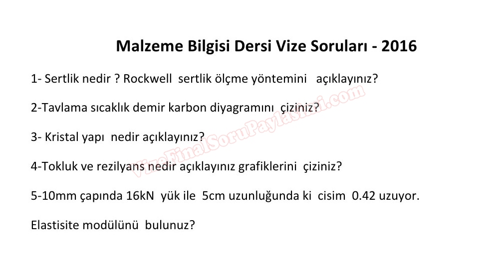 Malzeme Bilgisi Dersi Final Soruları 5-06-2014, 04:46