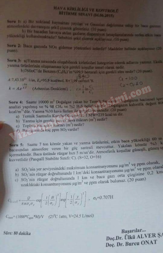 Hava Kirliliği ve Kontrolü Final Soruları 20-04-2016, 21:05