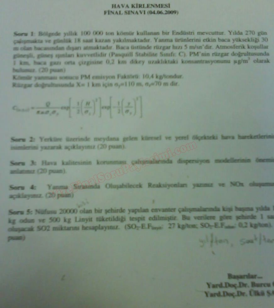 Hava Kirliliği ve Kontrolü Final Soruları - 2012 20-04-2016, 21:30
