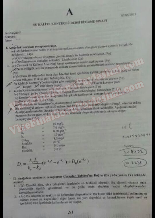 Vize ve Final Soruları / İstanbul Üniversitesi / Su Kalite Kontrolü Dersi