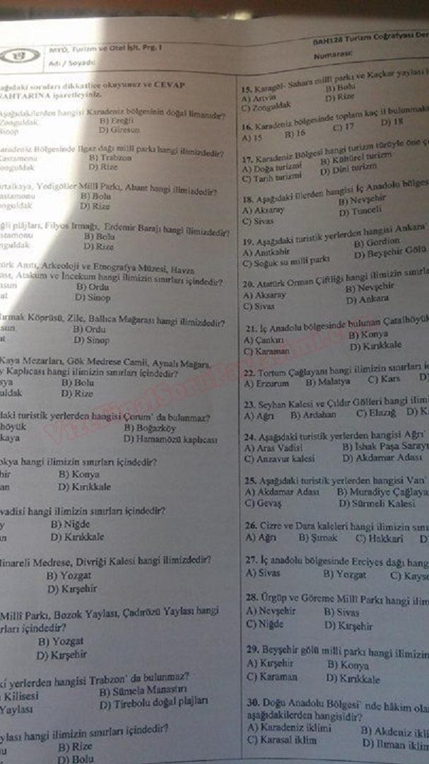 Vize ve Final Soruları / Bartın Üniversitesi / Turizm Coğrafyası Dersi