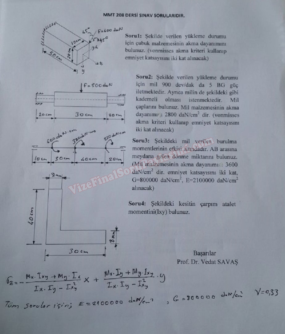 Mukavemet -2 Final Soruları Cevapları Çözümleri 2016 Makine Mühendisliği GERİ DÖN-