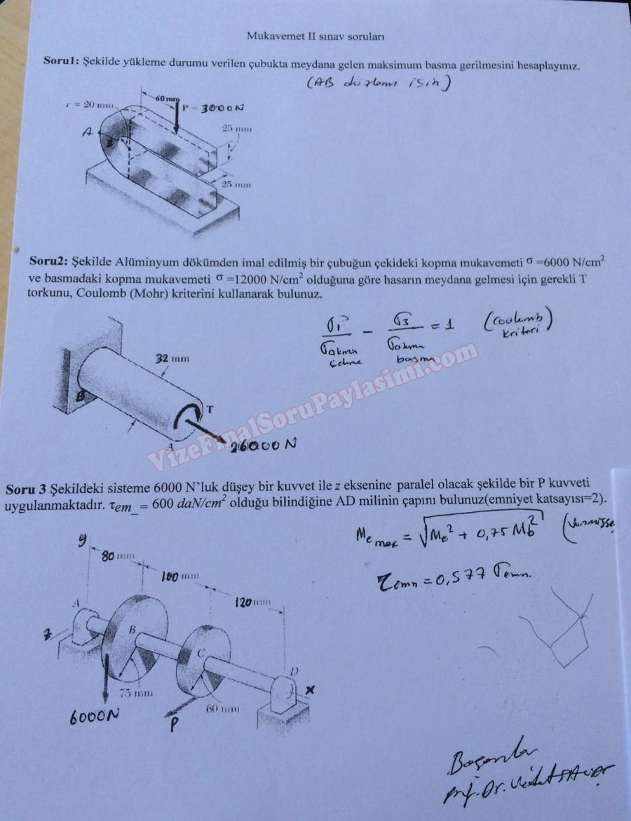 Mukavemet -2 Mazeret soruları Fırat Üniversitesi