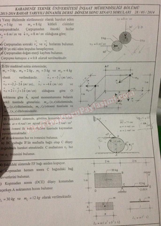 Dinamik Dersi Final Soruları 26-05-2015, 03:30