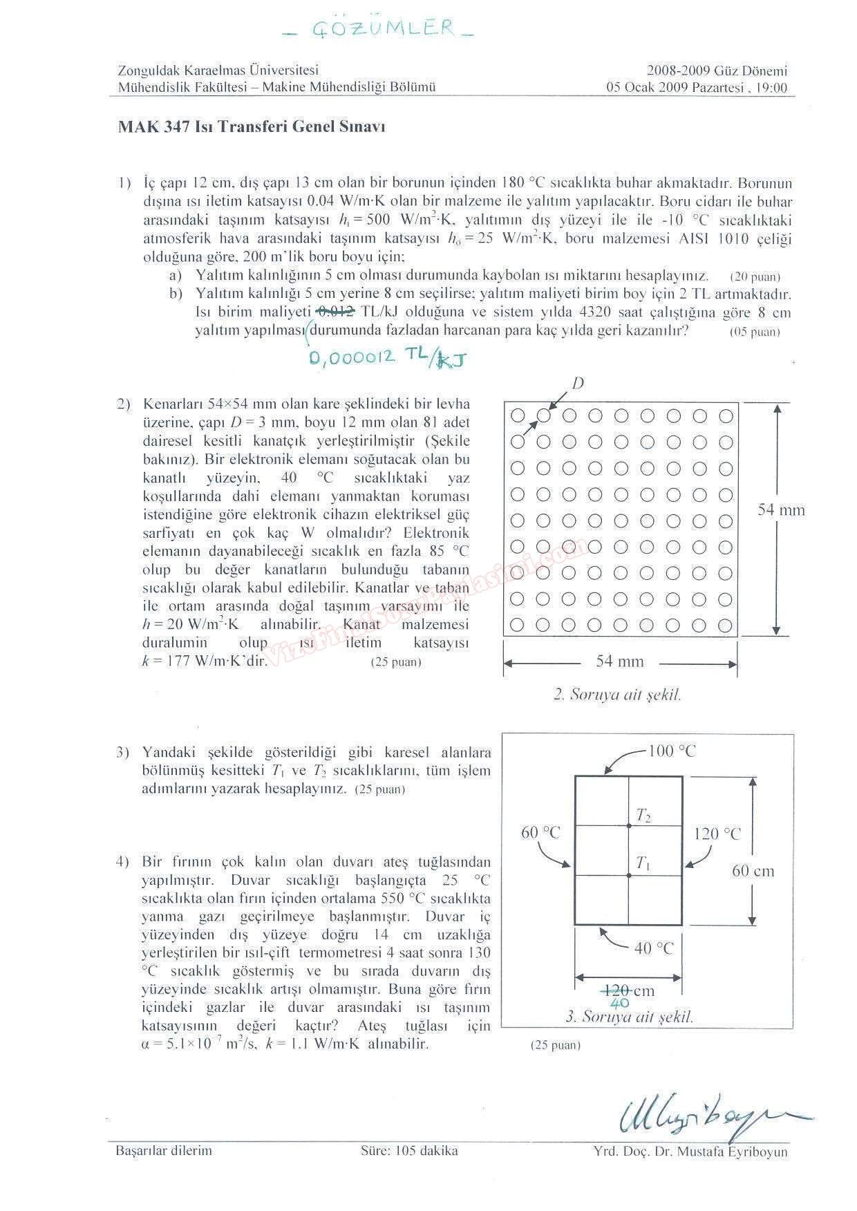 Bülent Ecevit Üniversitesi Isı Transferi Dersi final soruları GERİ DÖN-