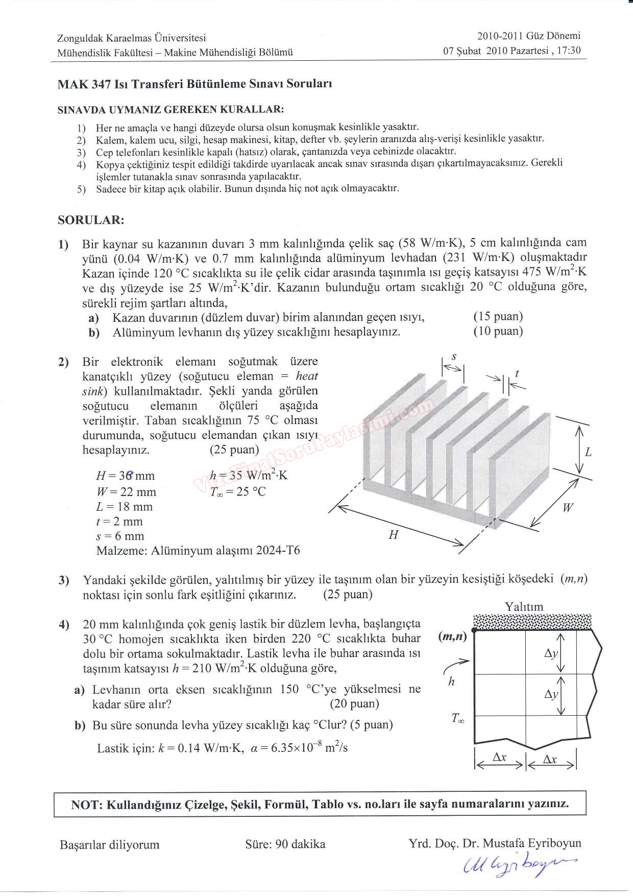 Isı Transferi Dersi Vize Soruları 2010 31-08-2016, 21:16