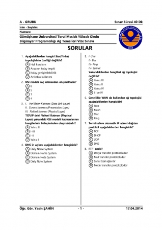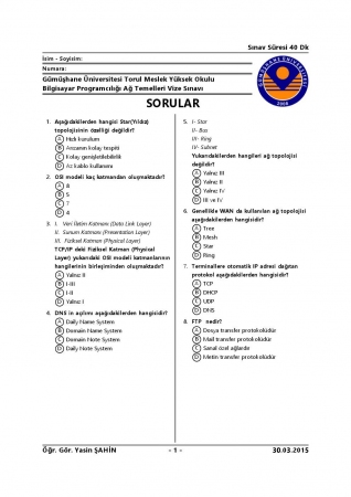 Ağ Temelleri Vize Soruları 2015 16-01-2016, 04:44
