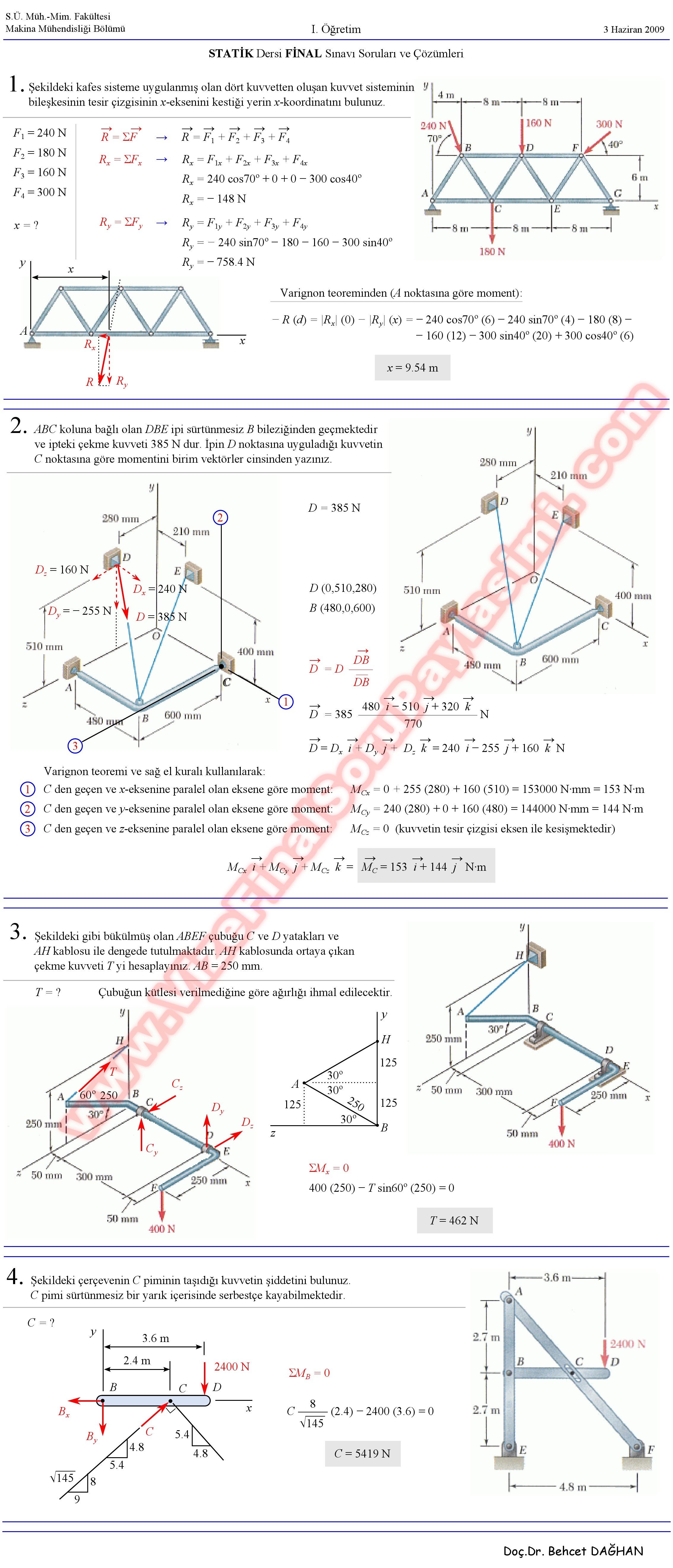 Statik Dersi Final Soruları Ve Çözümleri 27-10-2014, 22:18