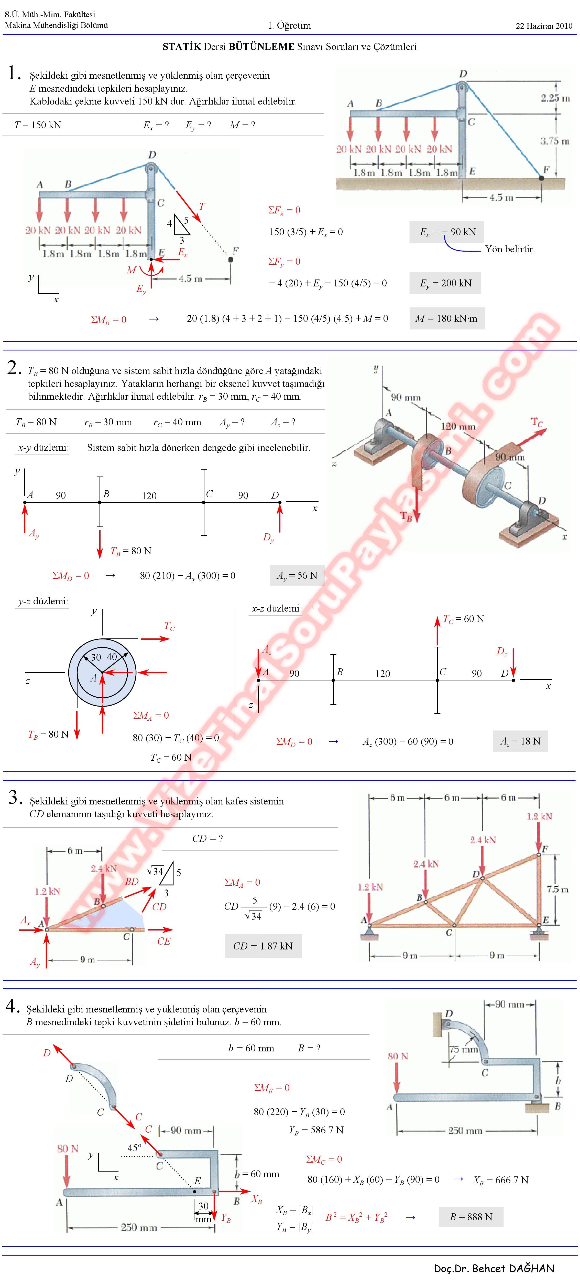 Statik Dersi Bütünleme Soruları Ve Çözümleri 26-10-2014, 23:31