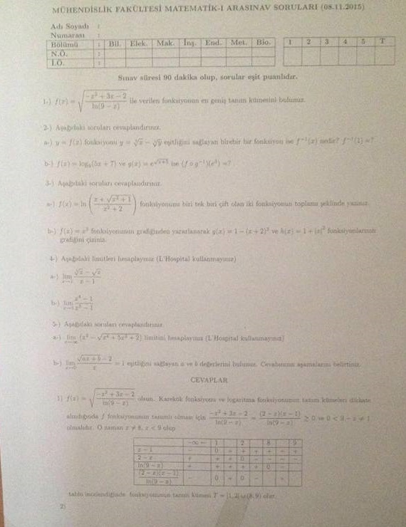 Matematik-1 Vize Soruları ve Cevapları - 2015 25-11-2015, 00:05