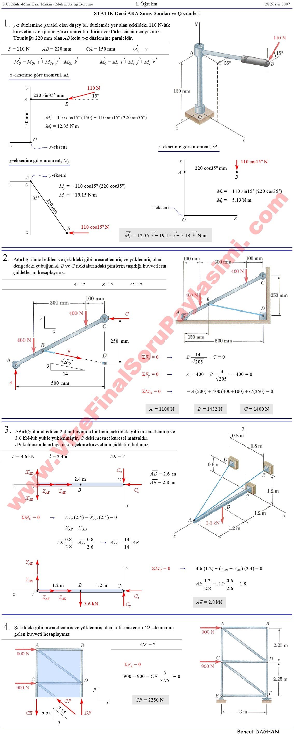 Statik Dersi Vize Soruları Ve Çözümleri 26-10-2014, 23:24