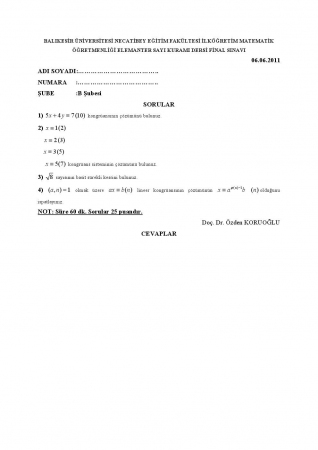 Elemanter Sayı Kuramı Final Soruları 2011 23-12-2015, 16:55
