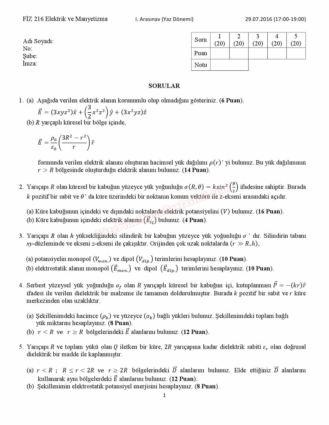 Elektrik Ve Manyetizma Vize Soruları Ve Cevapları 6-12-2016, 02:17
