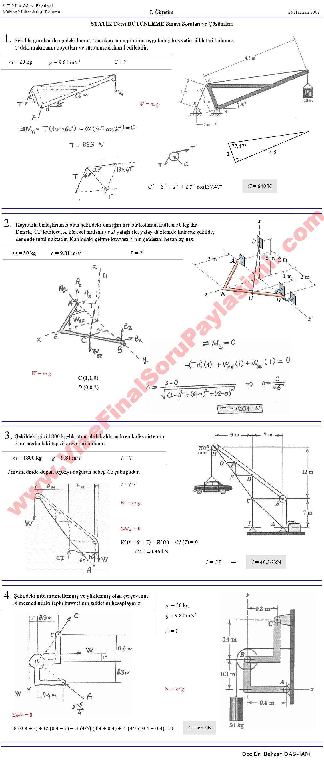 Statik Dersi Bütünleme Soruları Ve Çözümleri 26-10-2014, 23:31