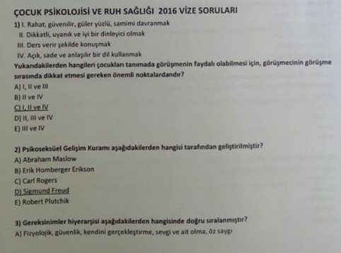 Çocuk Psikolojisi ve Ruh Sağlığı Dersi Çıkmış Sorular 8-12-2016, 14:32